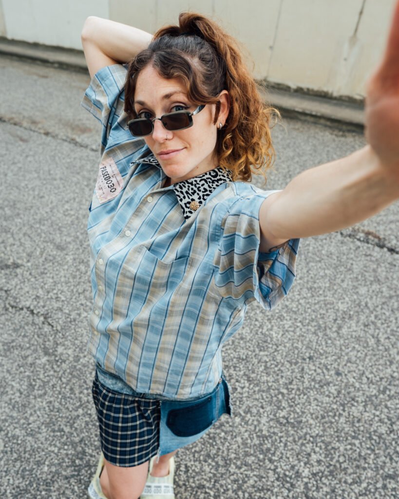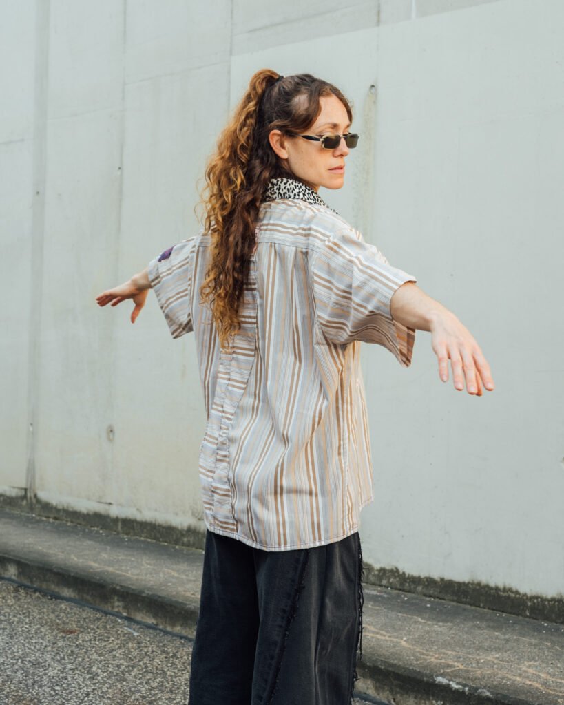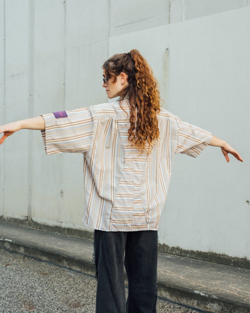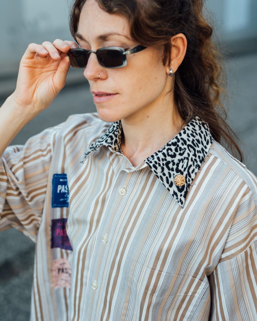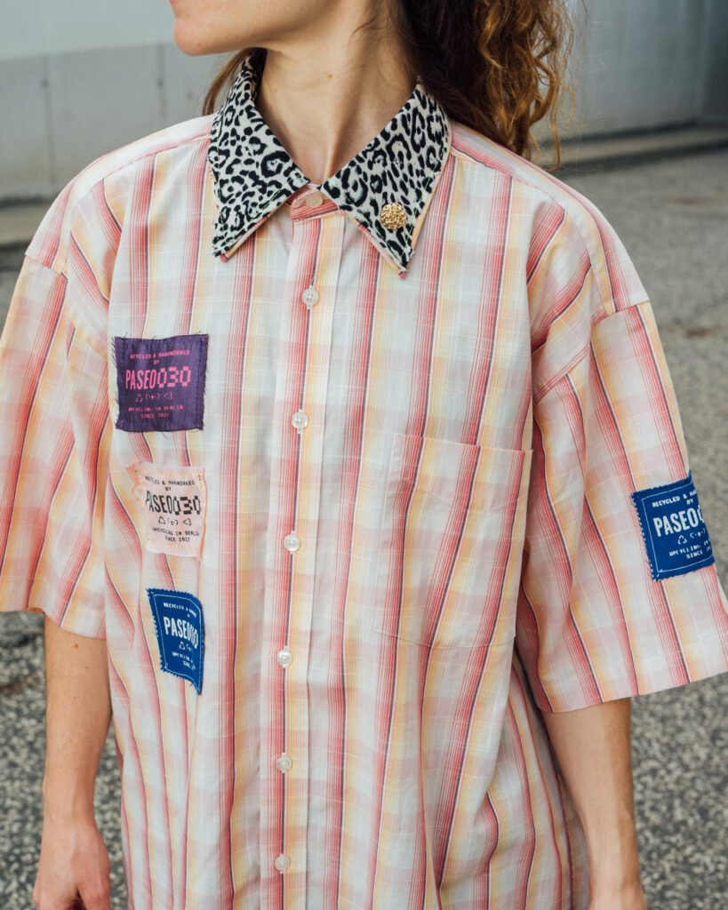 Boxy styled shirts, handmade out of discarded shirts, patchworked and customized with textile leftovers.