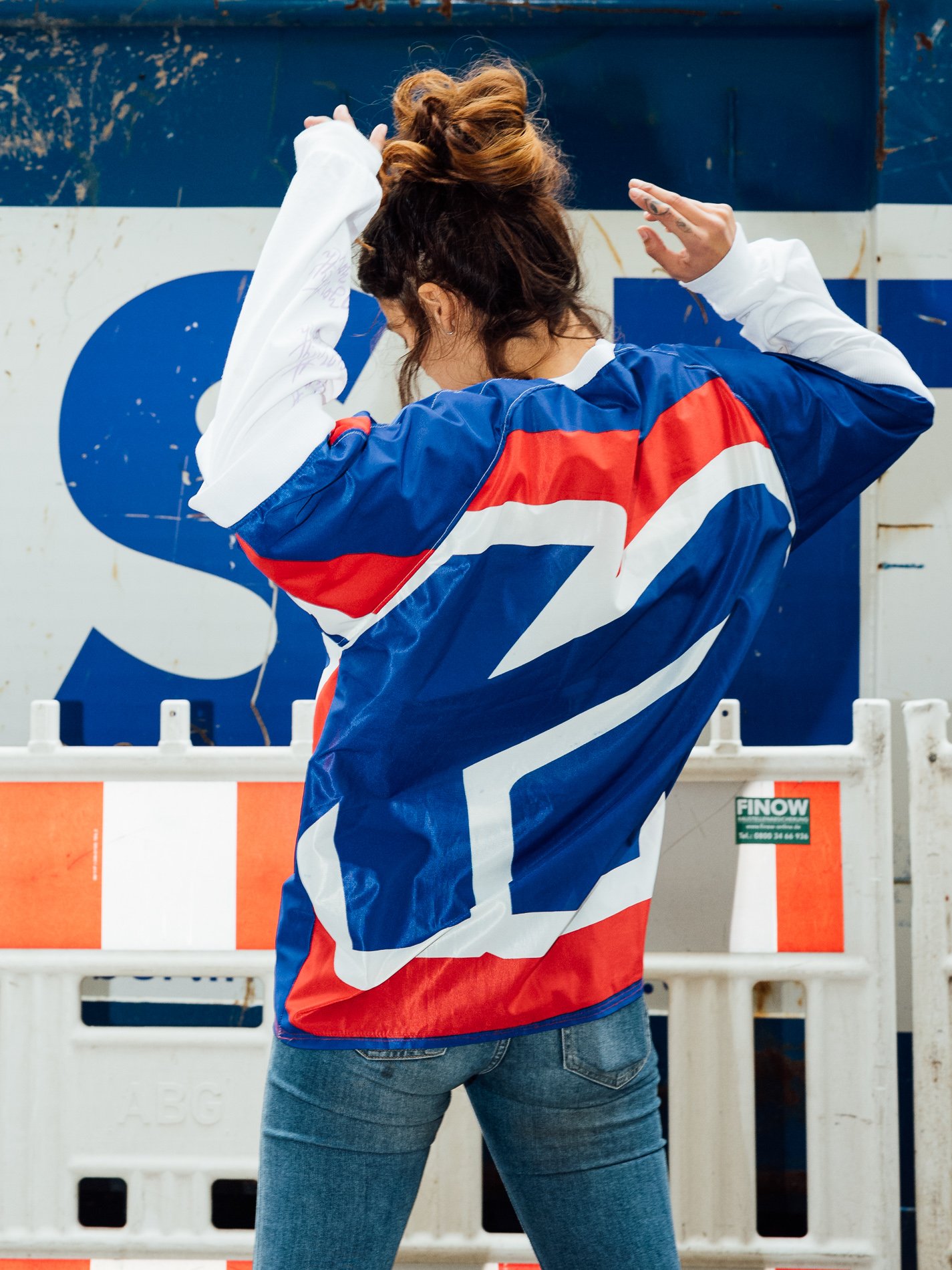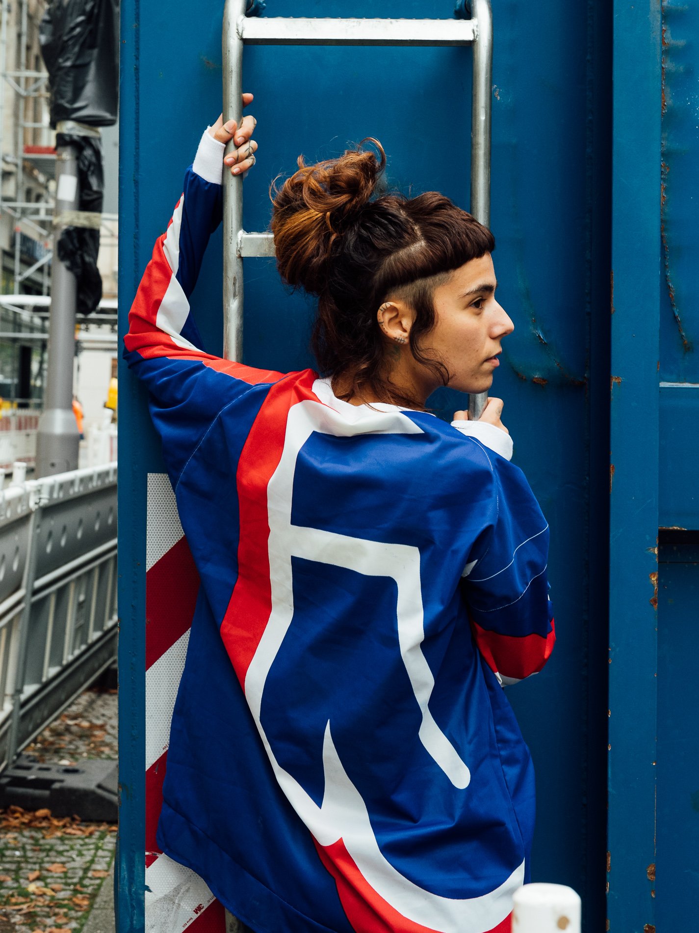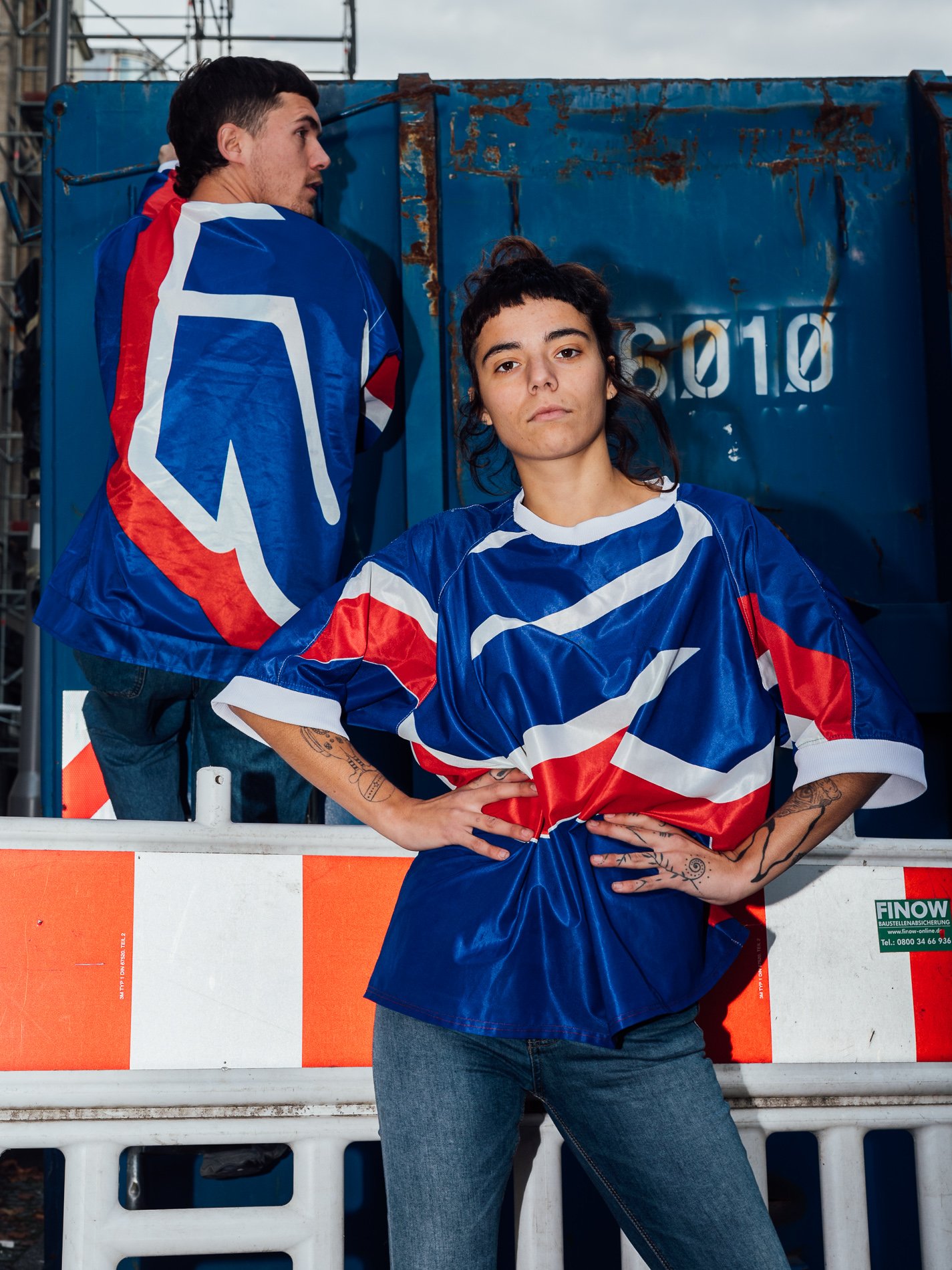 The use of polyester banners in this collection highlights an innovative approach to sustainable fashion by giving a second life to materials that would otherwise contribute to waste. By upcycling industrial materials into wearable garments, this process reduces the demand for new textiles and minimizes environmental impact. Each piece, hand-constructed using traditional fashion pattern-making methods, reflects the growing movement towards slow fashion—focusing on quality, longevity, and conscious production.