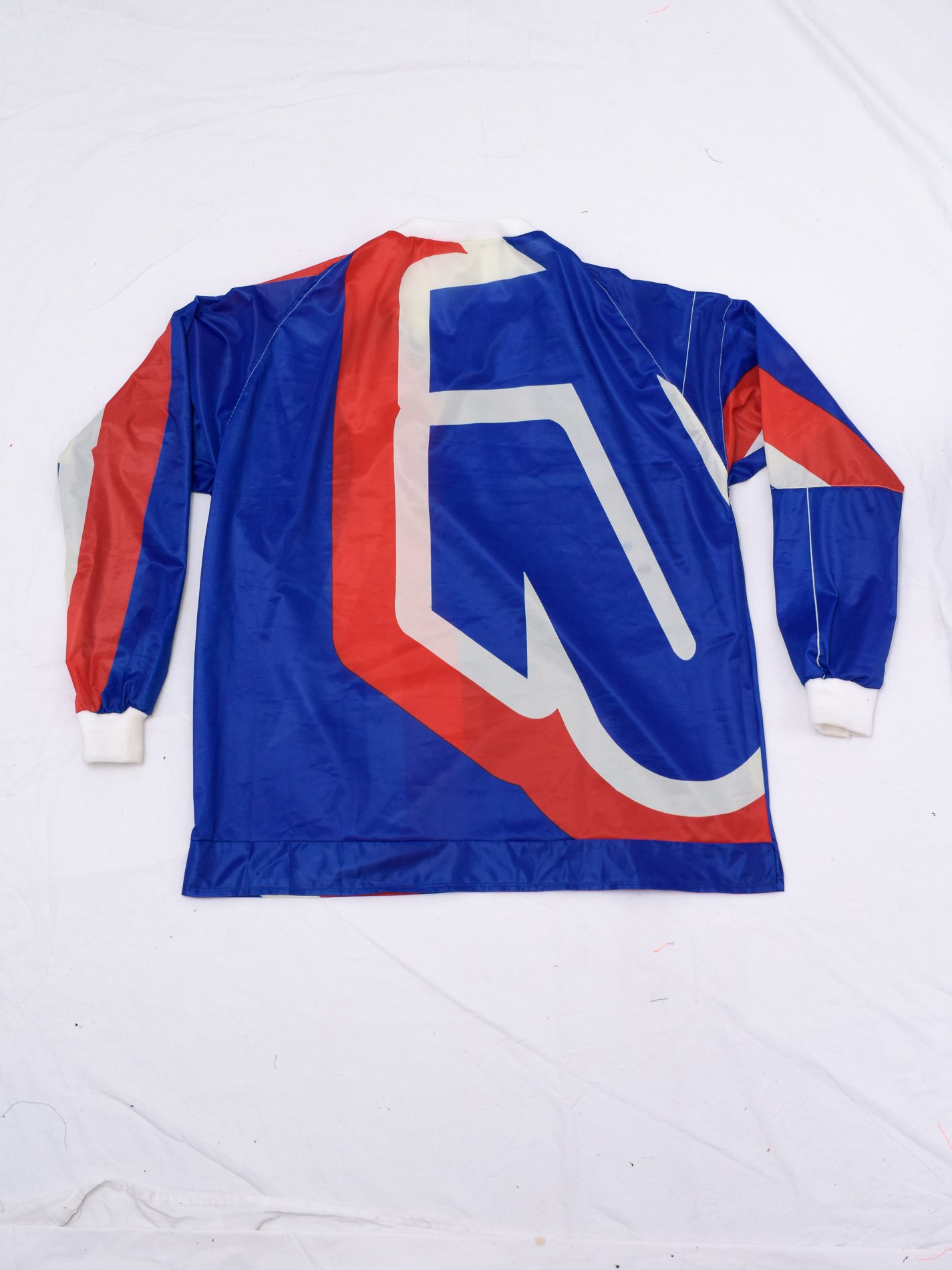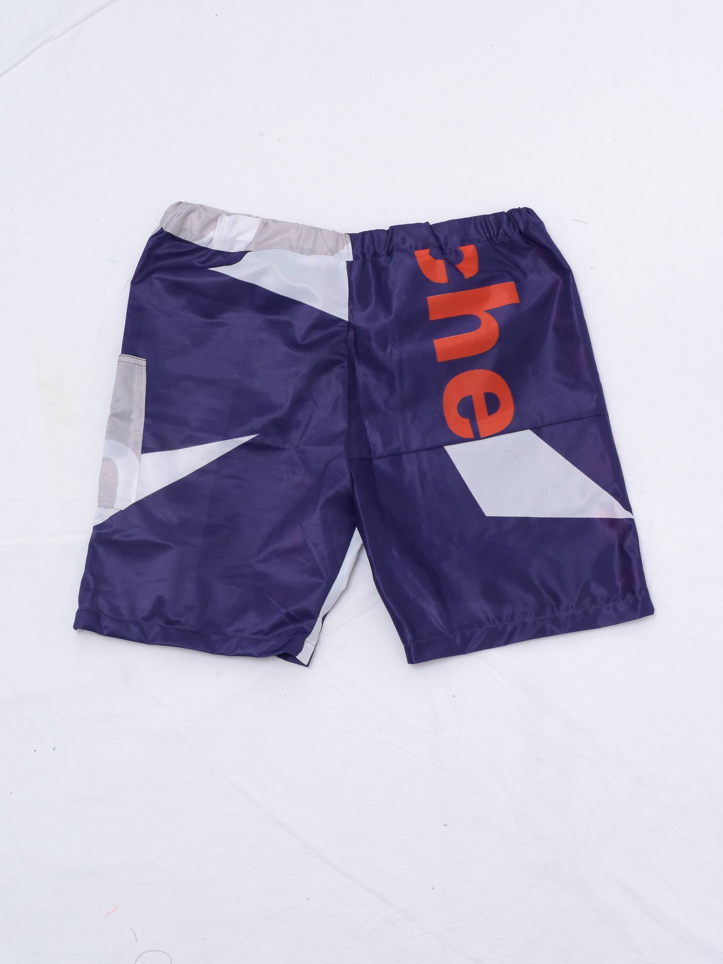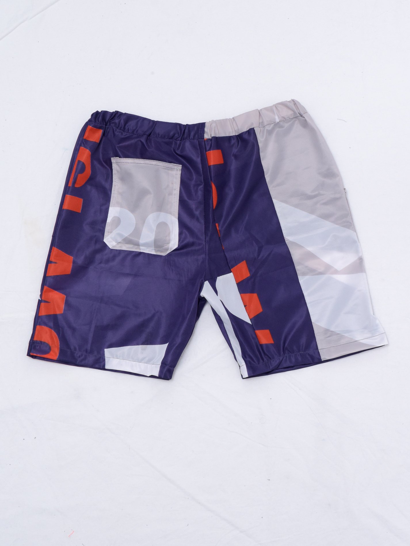 This selection of garments comes from the same material: printable polyester for banners, which has been repurposed into durable, wearable clothing. The process to achieve the final result involved constructing fashion patterns.