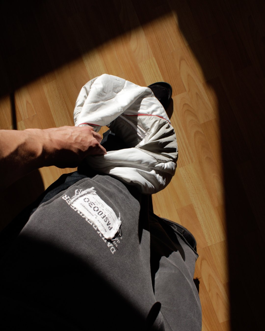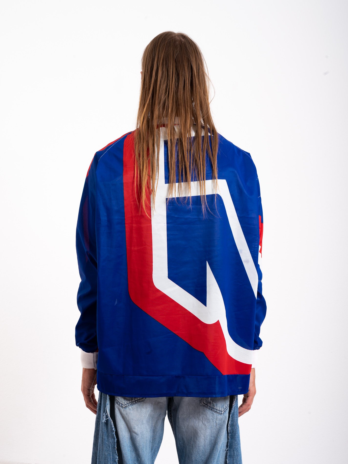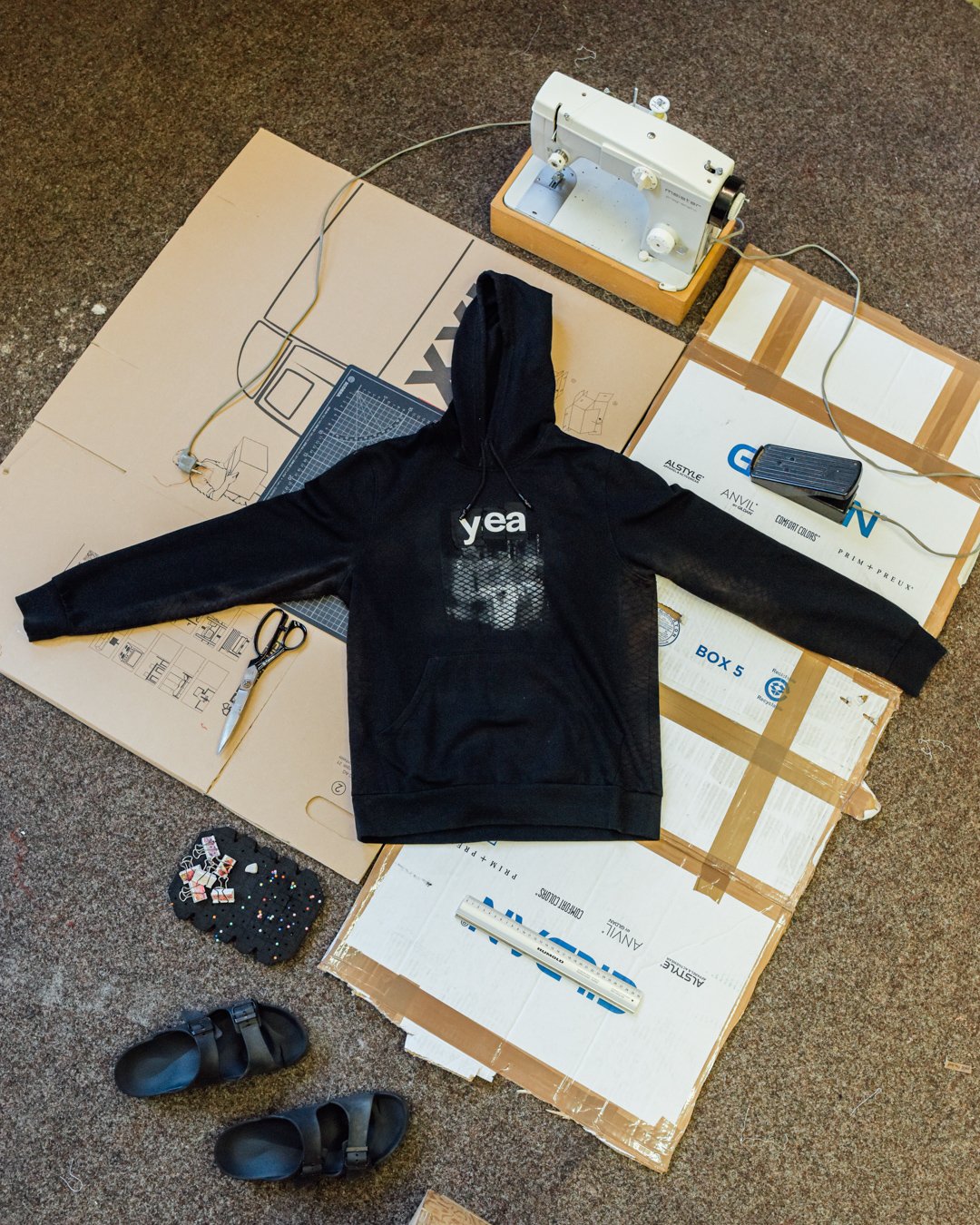 Sweater made from recycled banner.